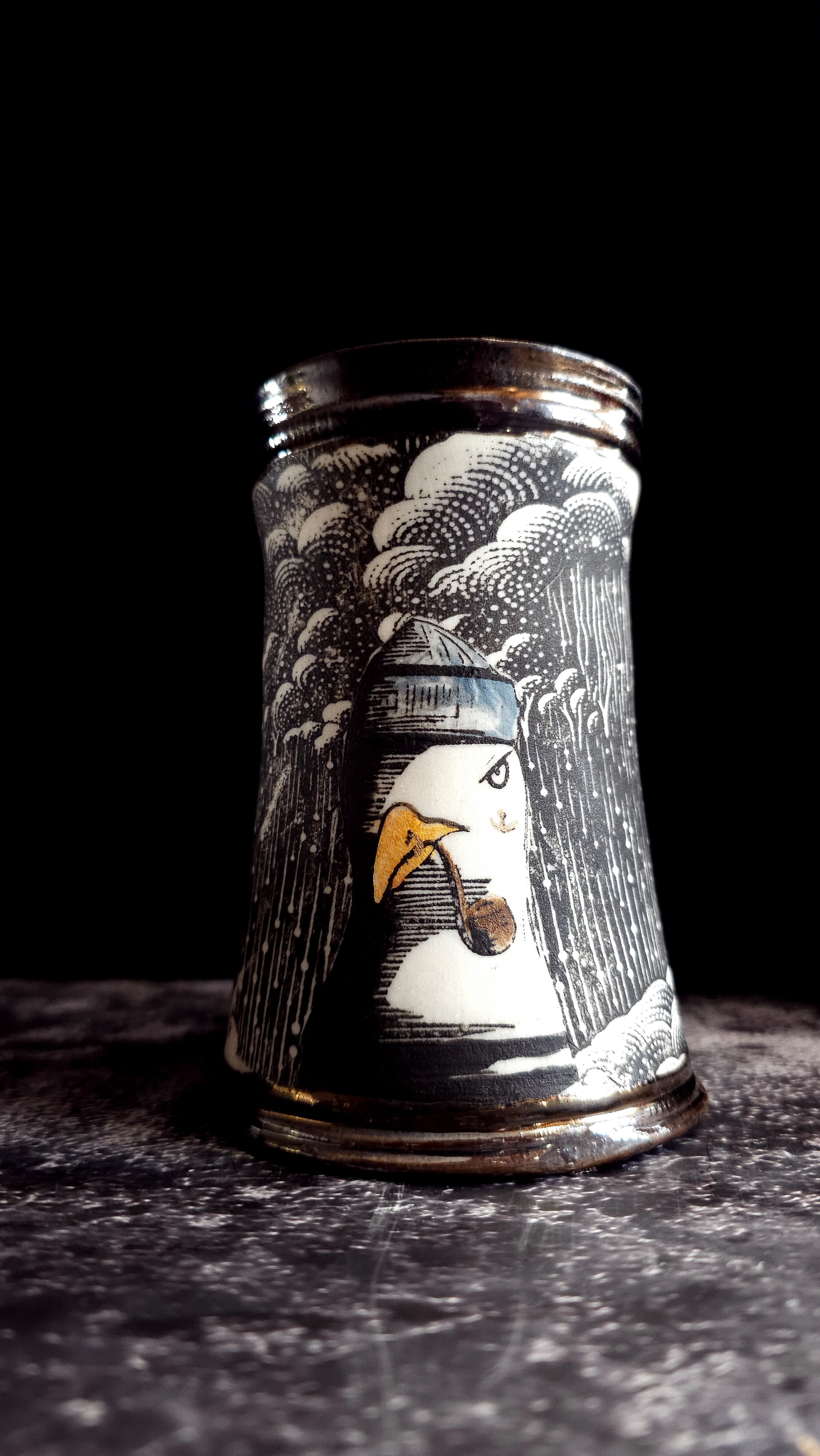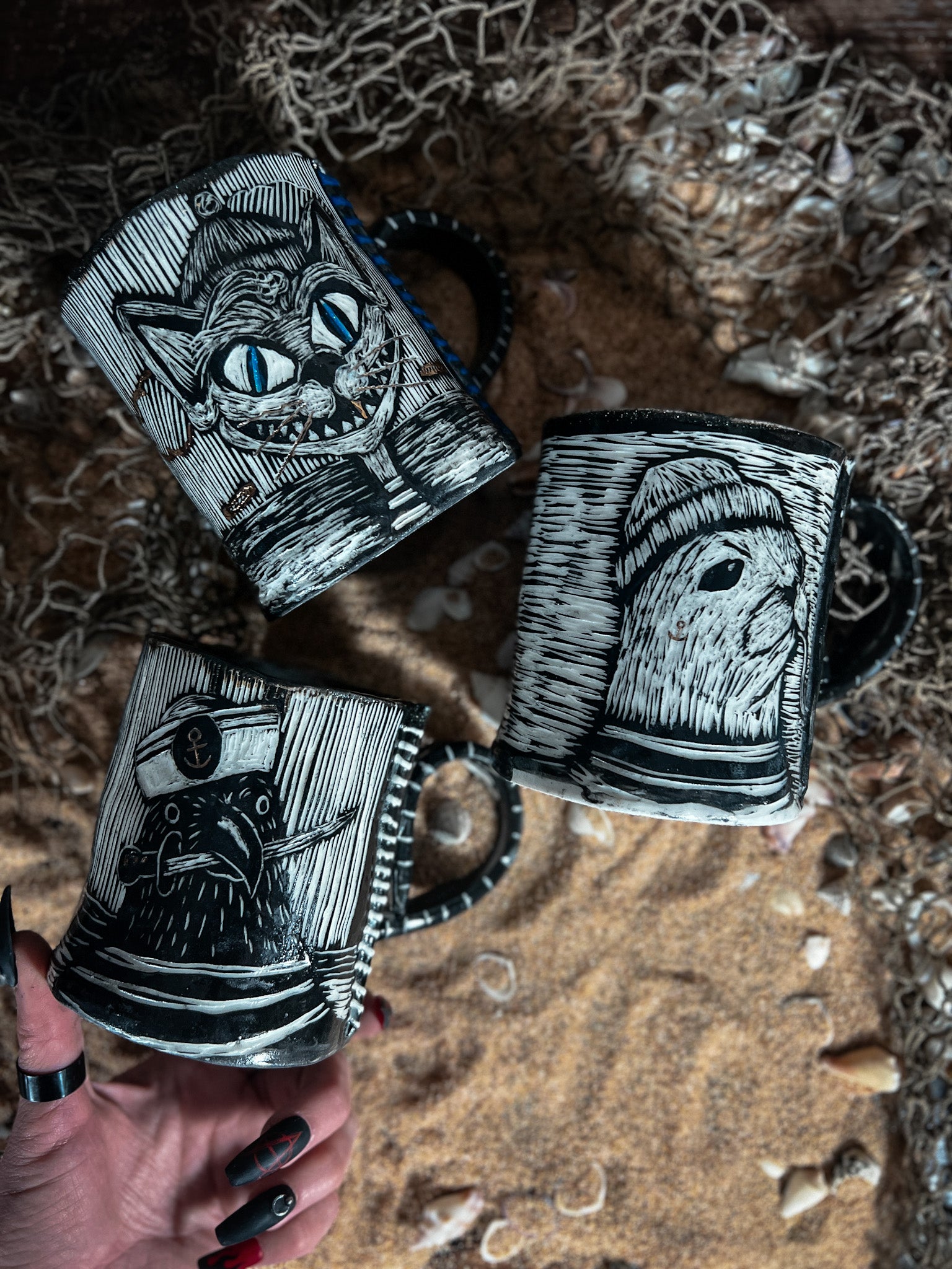 (Formerly)- Tied to the Ocean pottery! This little pottery shop seemingly ran by one very creative artist Vicky. Her work is truly unique. The pieces I have seen and the one that own each have their own little intricacies. And each character piece has its own back story. Salty seafarers to exquisitely dress skeletal remains. Now you may look and instantly be turned away by the price you see but if you are just looking for a mug or perhaps an ash tray or shot glass that merely serves its purpose than I do not recommend this. However if you want a truly unique piece of art from which to enjoy your coffee, cigar or spirits and the style is to your liking then I highly recommend Tied to the Ocean. She is expedient in shipping your item and it was packaged carefully to ensure its safe arrival. Across the continent over the northern border through the many hands it must have passed it arrived in one piece. -