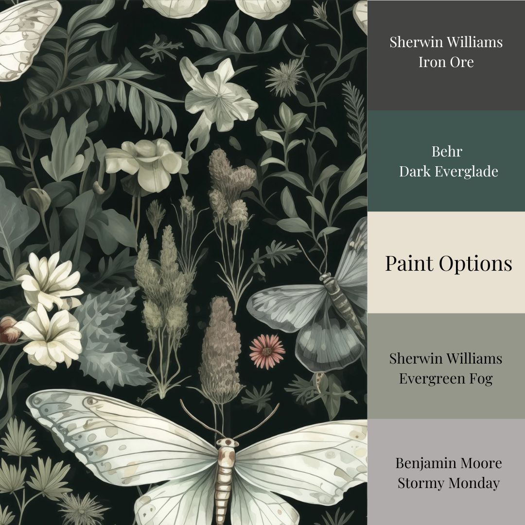 Featuring an intricate array of delicately illustrated moths, wildflowers, and foliage set against a deep, inky backdrop, this design effortlessly embodies the mystical beauty of dark cottagecore. Ideal for transforming bedrooms, creative spaces, or feature walls into whimsical retreats, this peel-and-stick wallpaper is perfect for easy DIY installation.