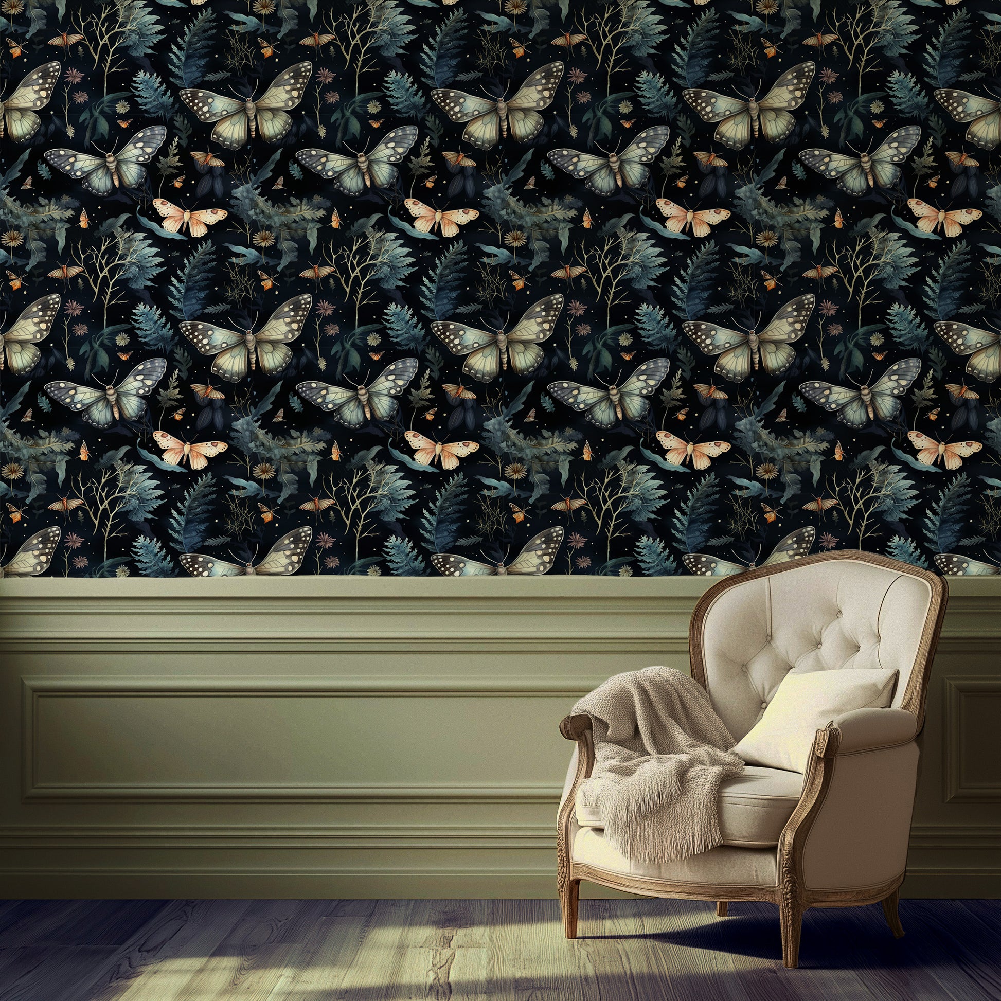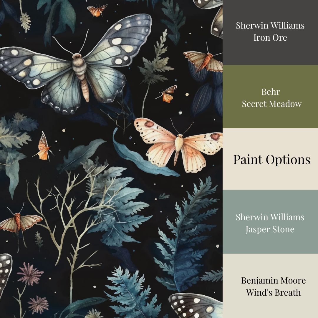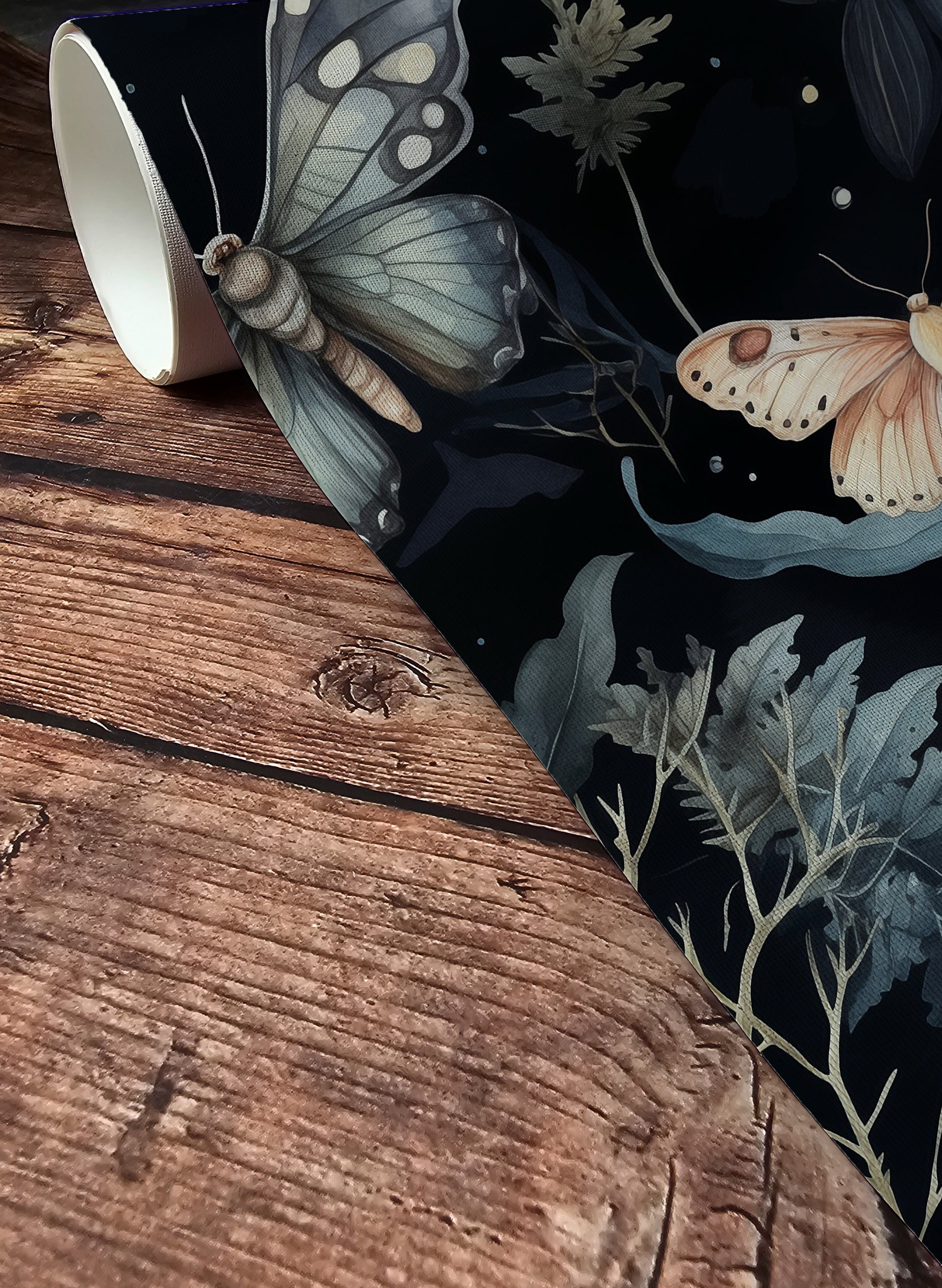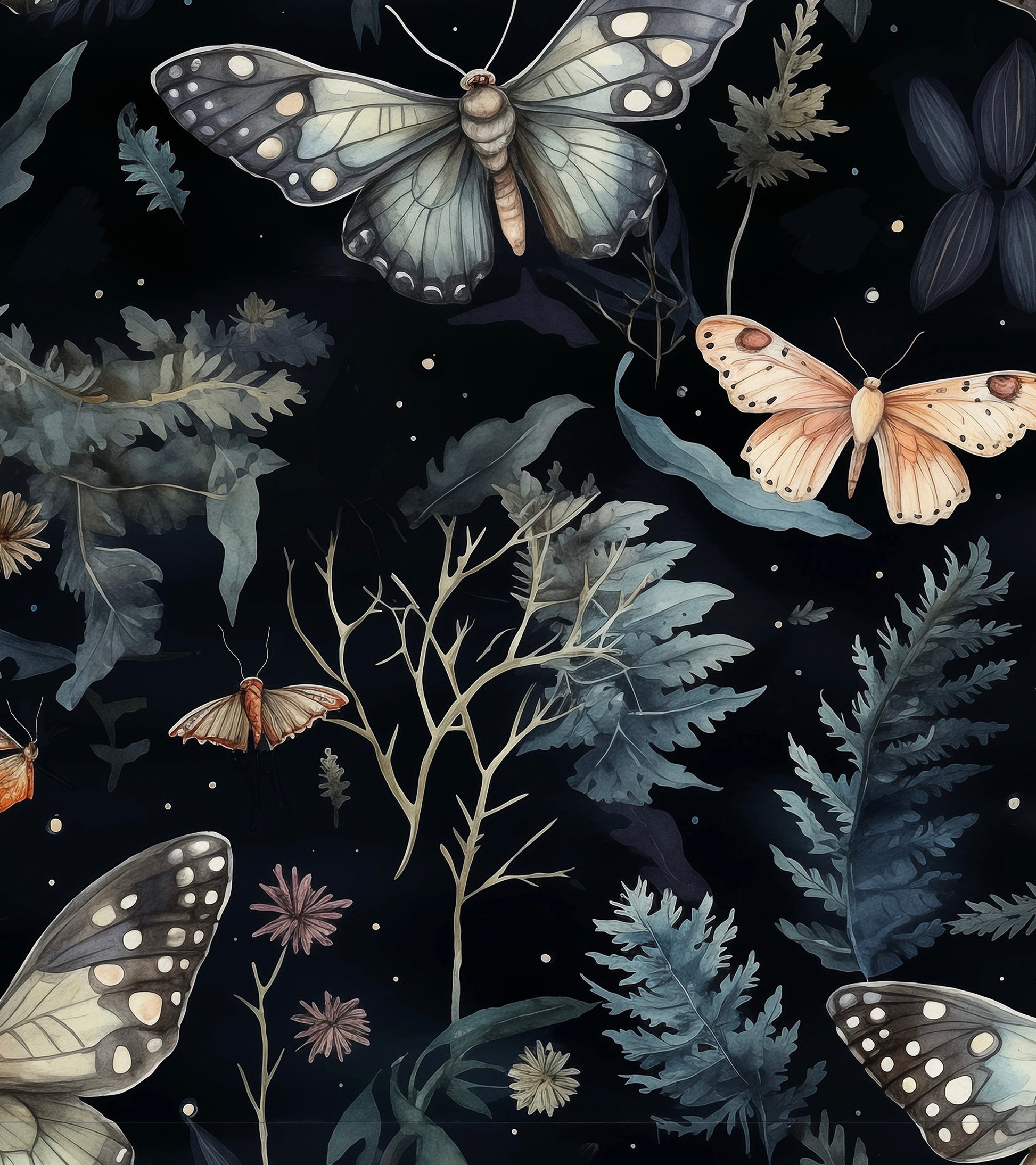 When the world quiets and dusk begins to settle, the air fills with wings. This design captures the stillness of evening—when moths emerge under a starlit canopy, drifting gently through midnight ferns and fading blooms. It’s a scene for the ones who move softly through the world, who find beauty in the overlooked, and who feel most alive when the rest of the world is winding down. This is for the slow evenings, the candlelit hours, the moments when your home becomes a quiet retreat from the noise.