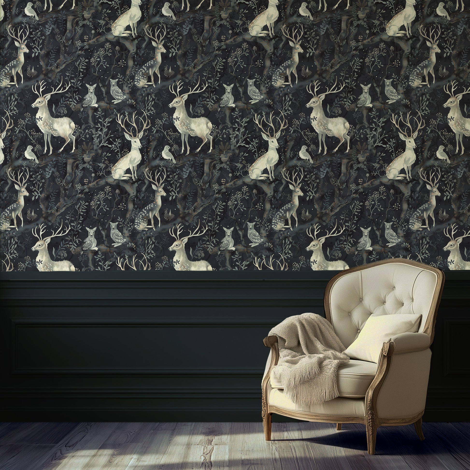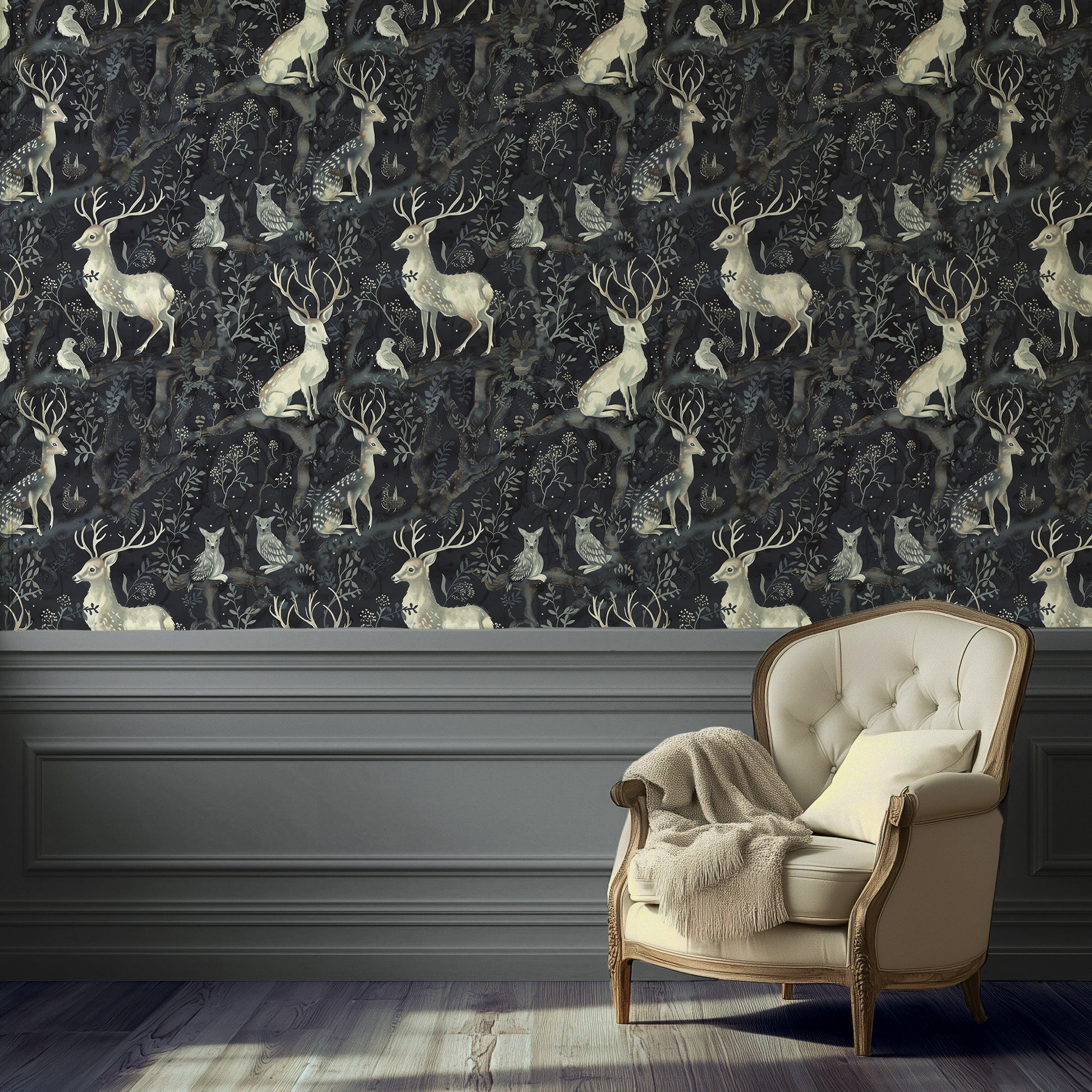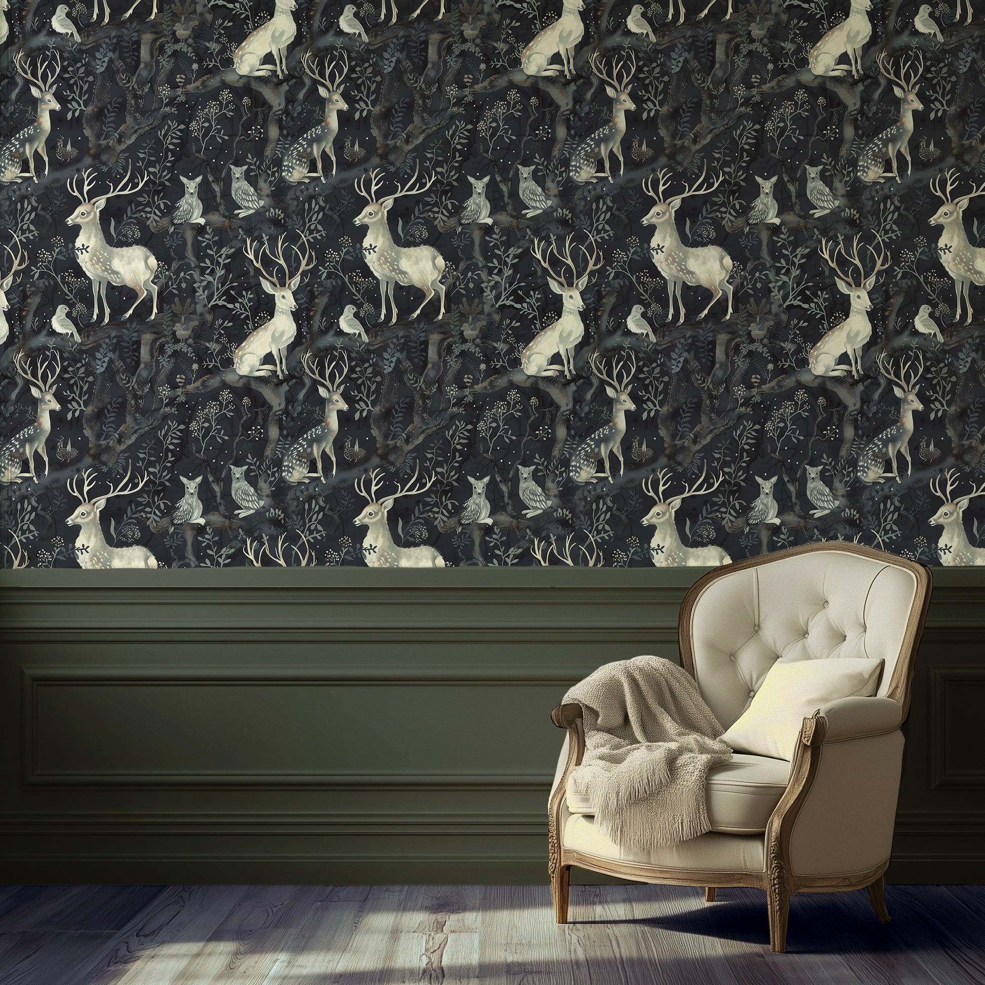 Fairy Tales is a twilight world of silver stags, wise owls, foxes, and birds nestled among moss-covered branches and deep indigo leaves. There’s a hush to it—but not an emptiness. The kind of stillness that comes when you know you're not alone, and yet feel completely safe.
