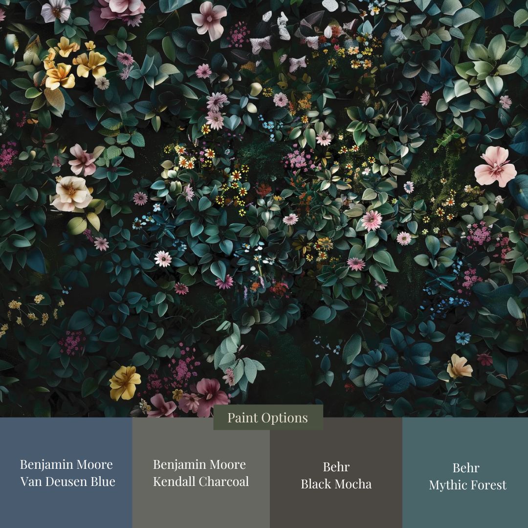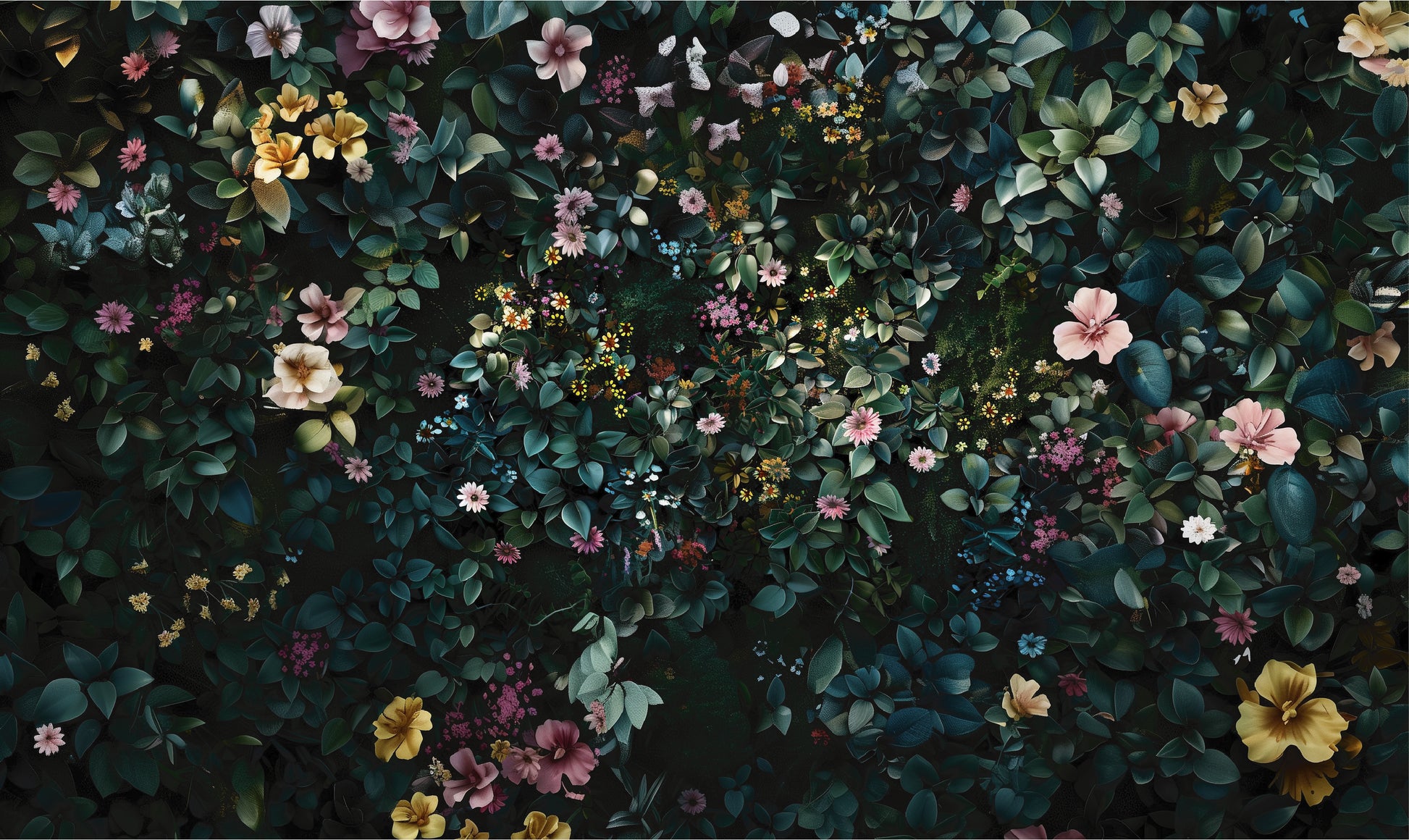 There’s a hush in the air as night deepens and the garden comes alive with secrets. The Fantasia Mural is a world of shadows and blooms, where deep green leaves cradle dusky florals in soft blush, violet, honey, and cream. This mural doesn’t ask for attention—it commands it, quietly.
