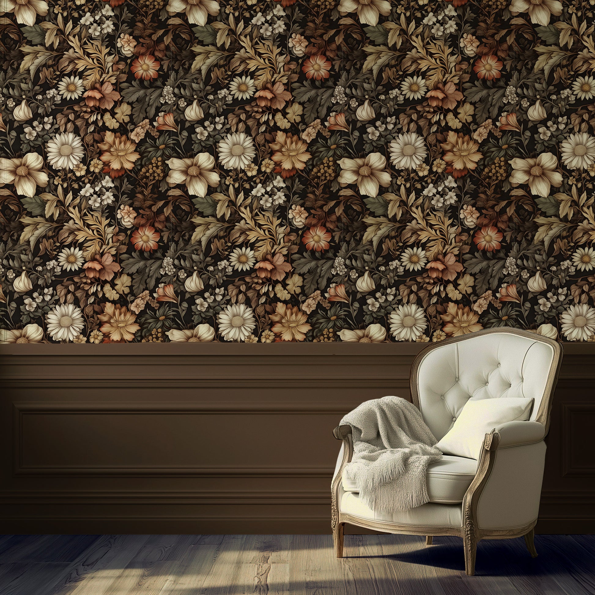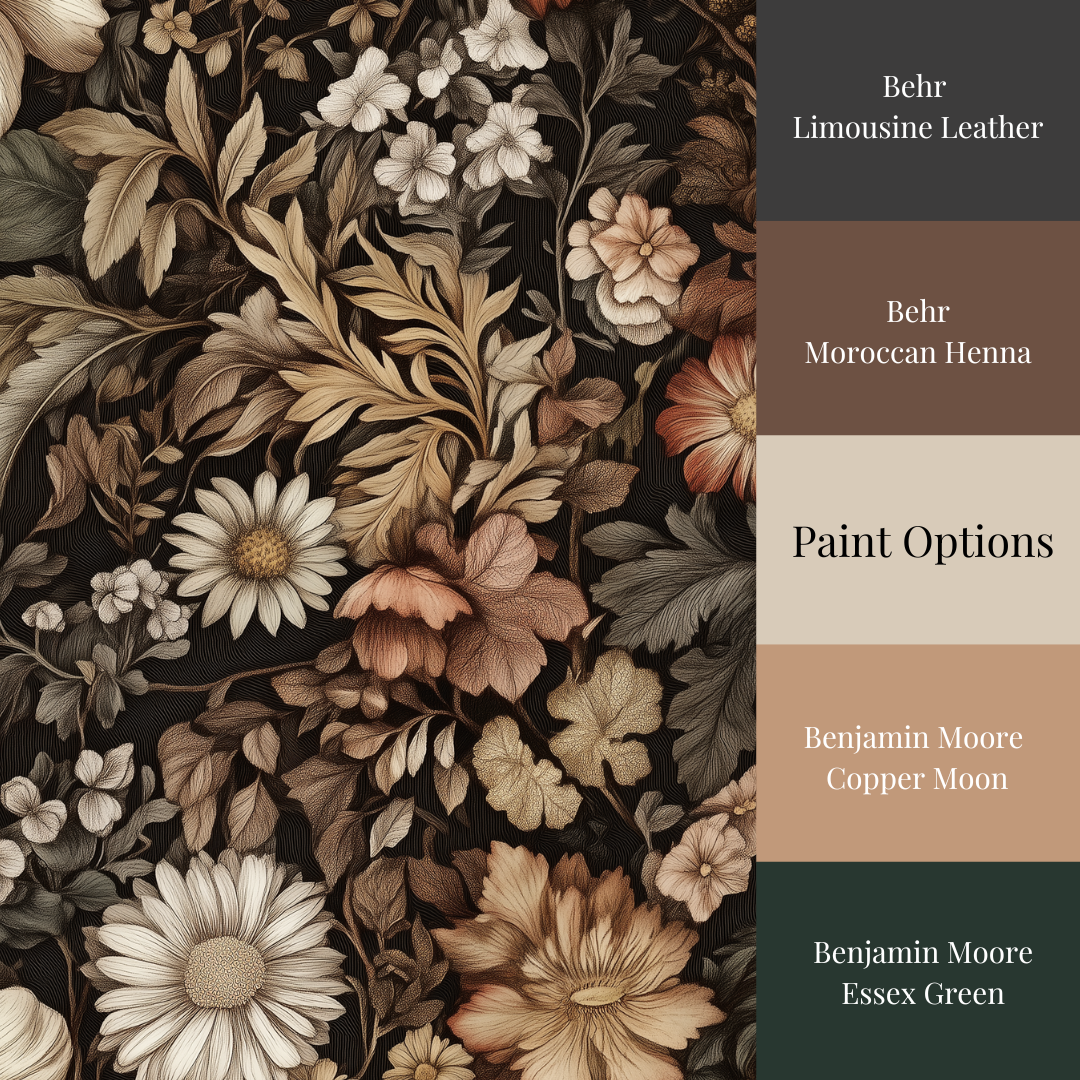 This design is a slow-burning bloom—layered petals in sienna, umber, ivory, and ash unfolding against a backdrop of velvety black. It feels like soil, dusk, and memory. The florals are neither soft nor loud—they're grounded, like something that’s always been there. A tapestry of forgotten gardens and fading sun, grown for the ones who love too deeply to stay surface-level.