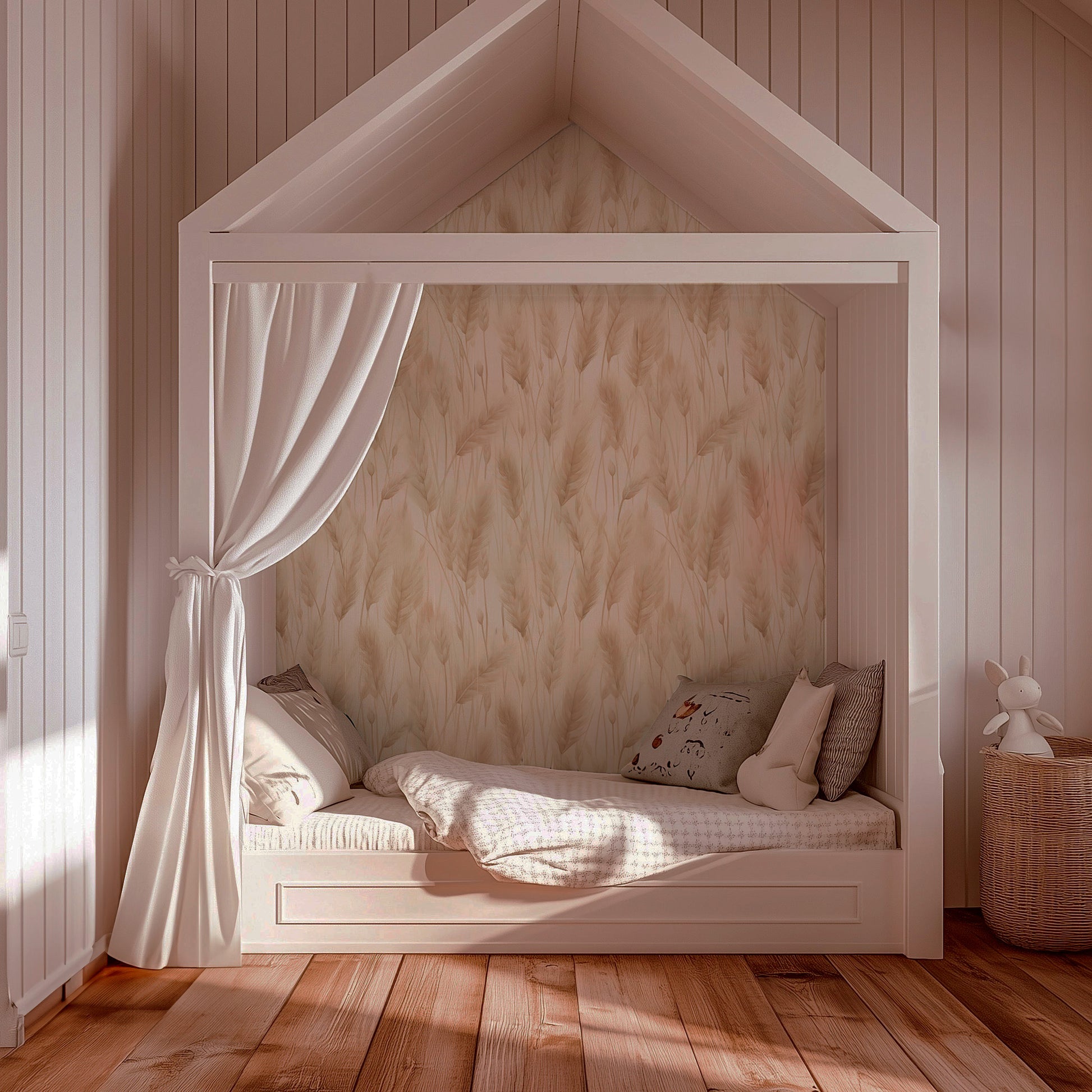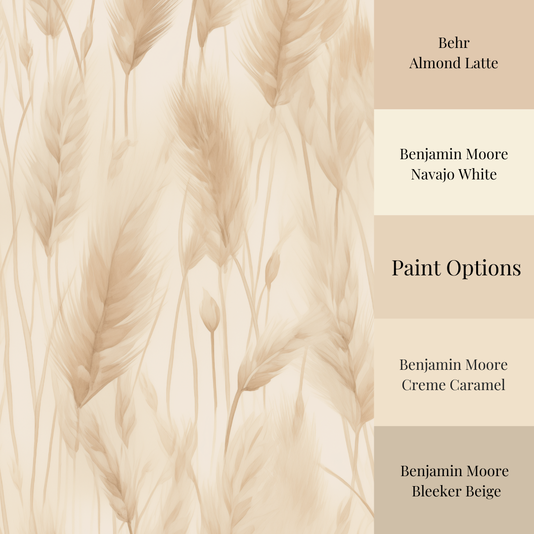 This design is simple but not plain—wispy pampas drift across a warm cream background in subtle shades of sand, oat, and golden flax. It's like standing in a sun-washed field at the edge of summer, where everything moves in slow rhythm.