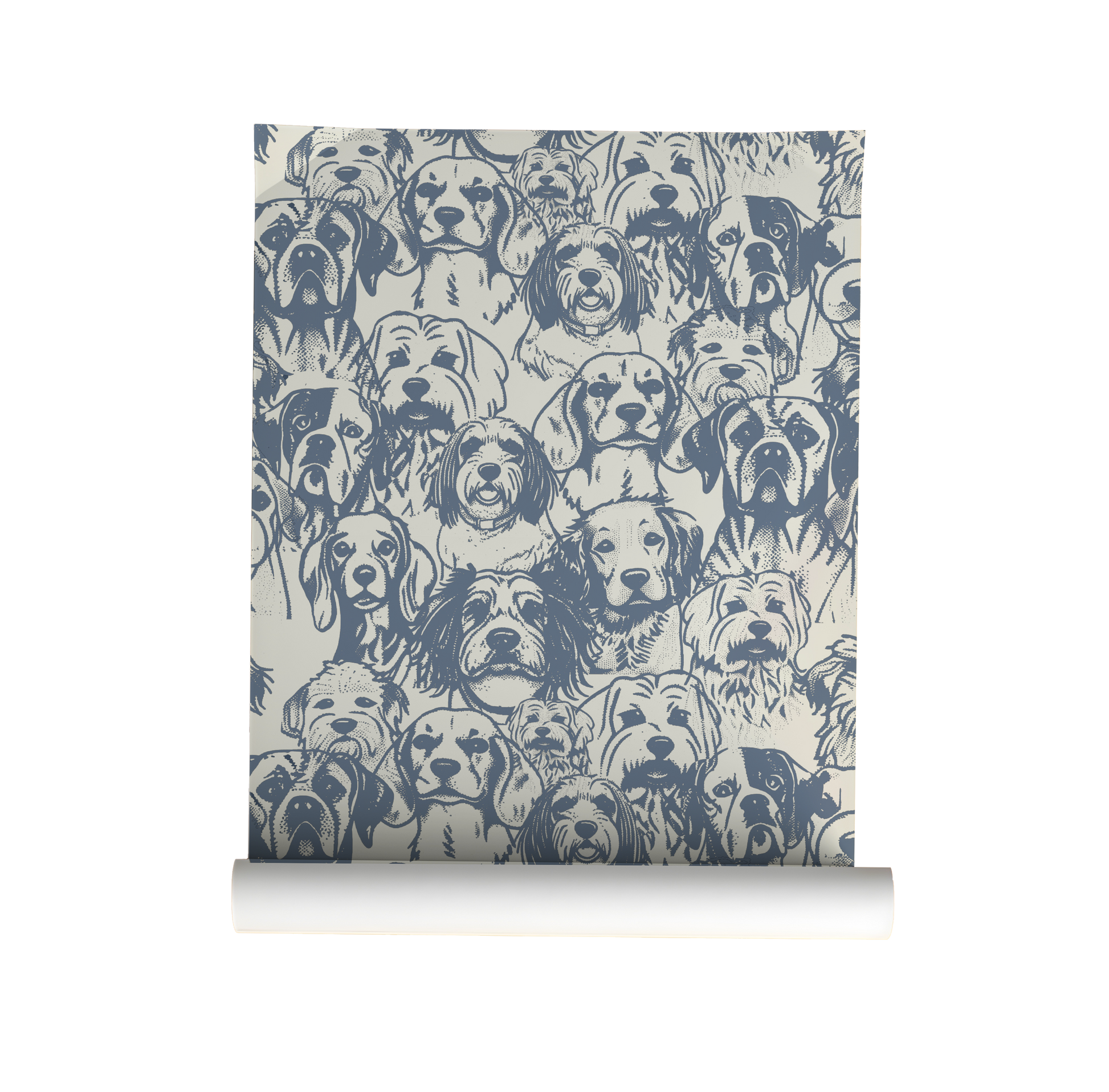 A tapestry of hand-drawn pups—each with its own unique expression—creates a lively, heartwarming scene that celebrates the joy dogs bring into our lives. The navy-on-cream palette keeps it stylish and modern while still being irresistibly cute. Ideal for kids’ rooms, pet spaces, mudrooms, and playful accent walls.