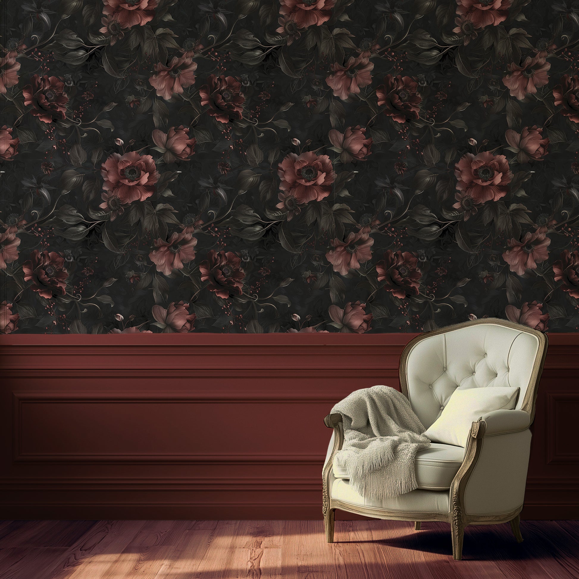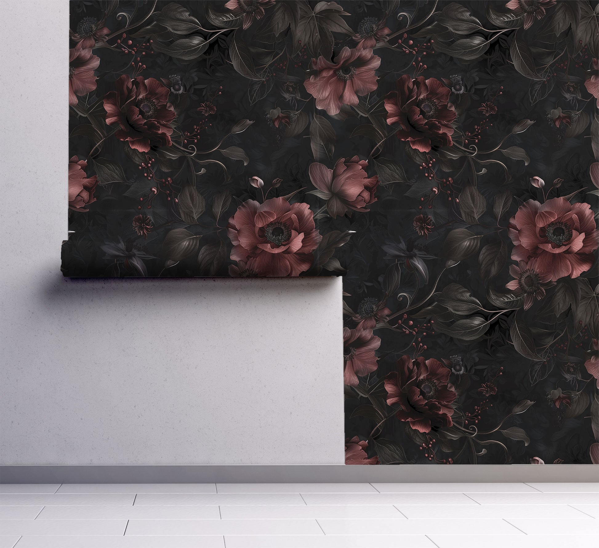 This design evokes a secret midnight garden, where obsidian leaves shimmer like whispers and garnet blooms unfurl in the hush. Each flower feels like a whispered vow, each vine a secret kept too long.