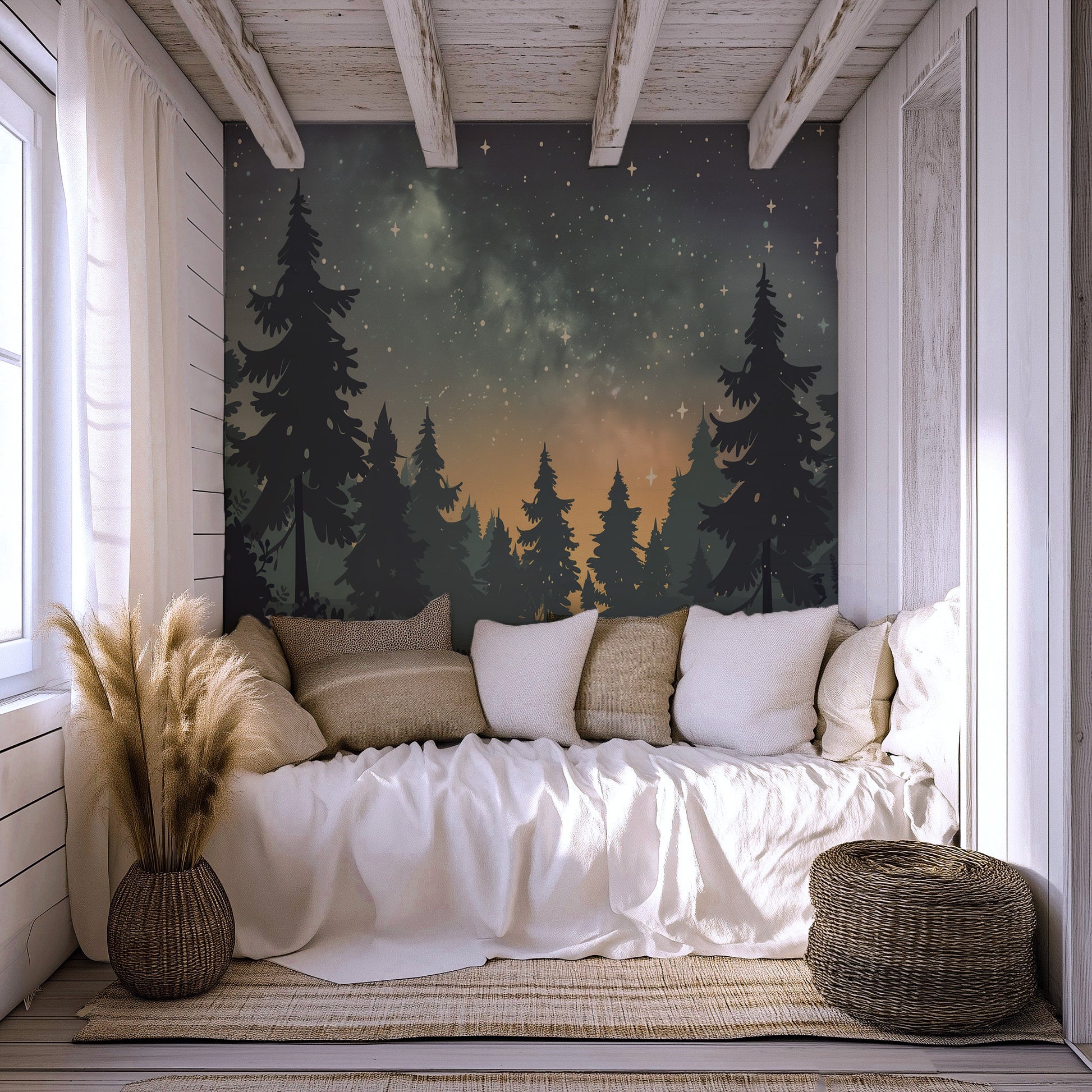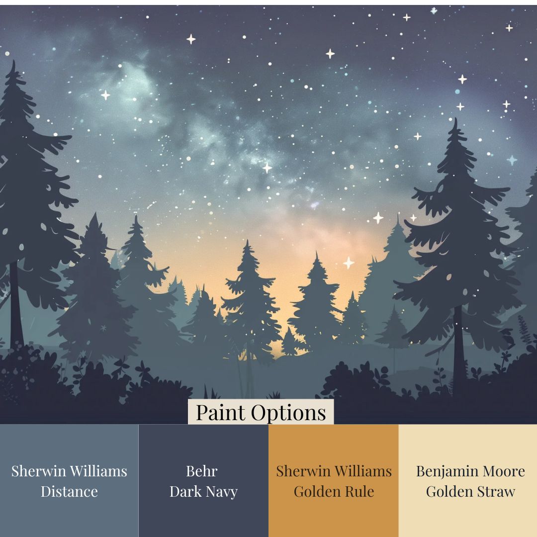 This mural is made for stargazers, storytellers, and dreamers who know that real magic lives in the hush between dusk and night. It's a quiet epic—part forest lullaby, part cosmic spell.
