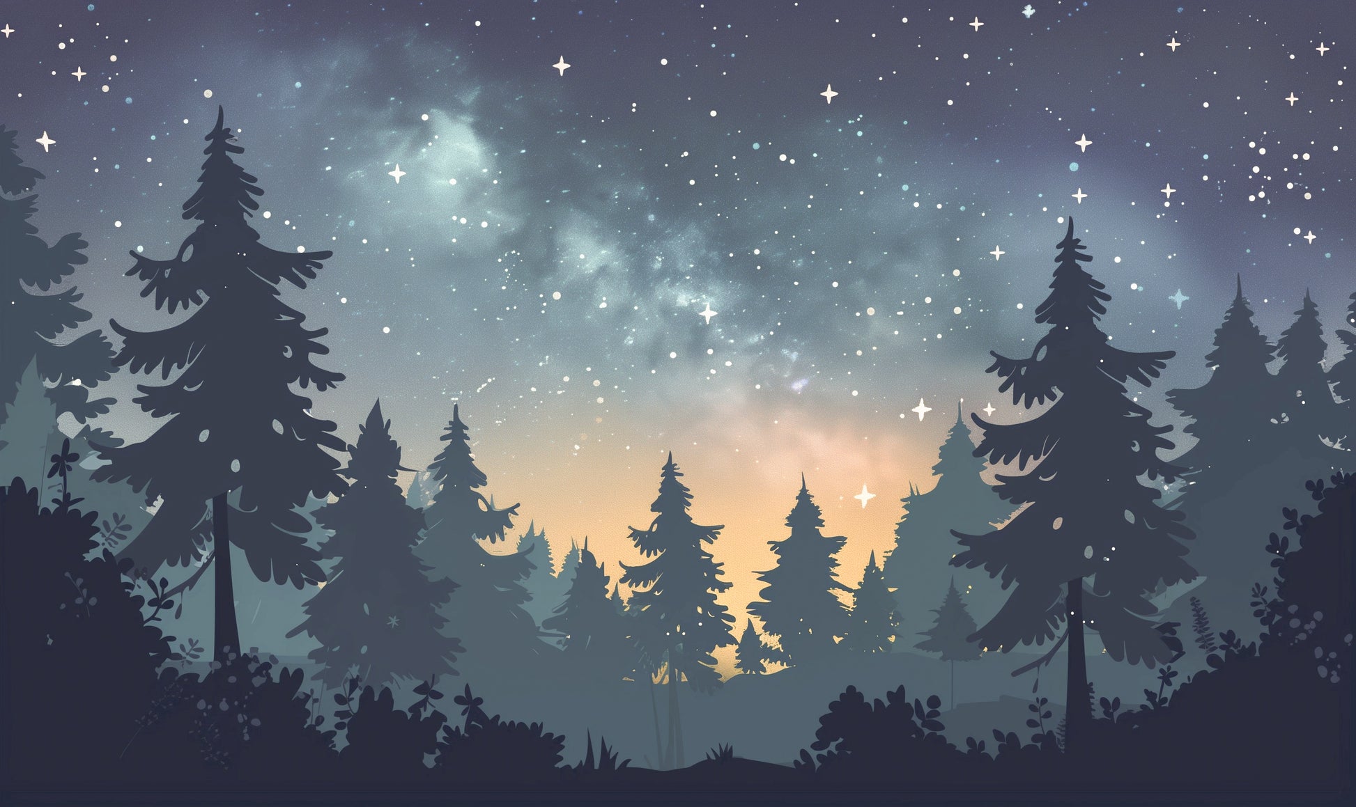 There are places that feel older than memory—where the trees hum with stories and the stars hang a little lower. The Appalachians invites you into that kind of stillness. A twilight forest scene unfolds beneath a sky glittering with stars, its deep pine silhouettes and golden horizon conjuring something sacred, something almost whispered.