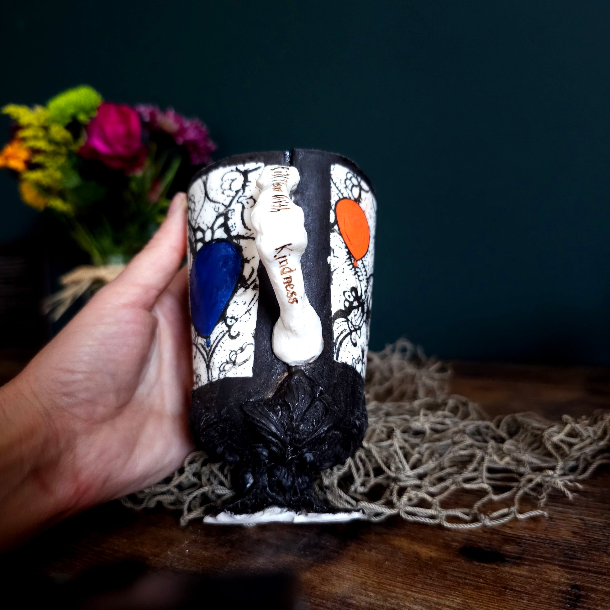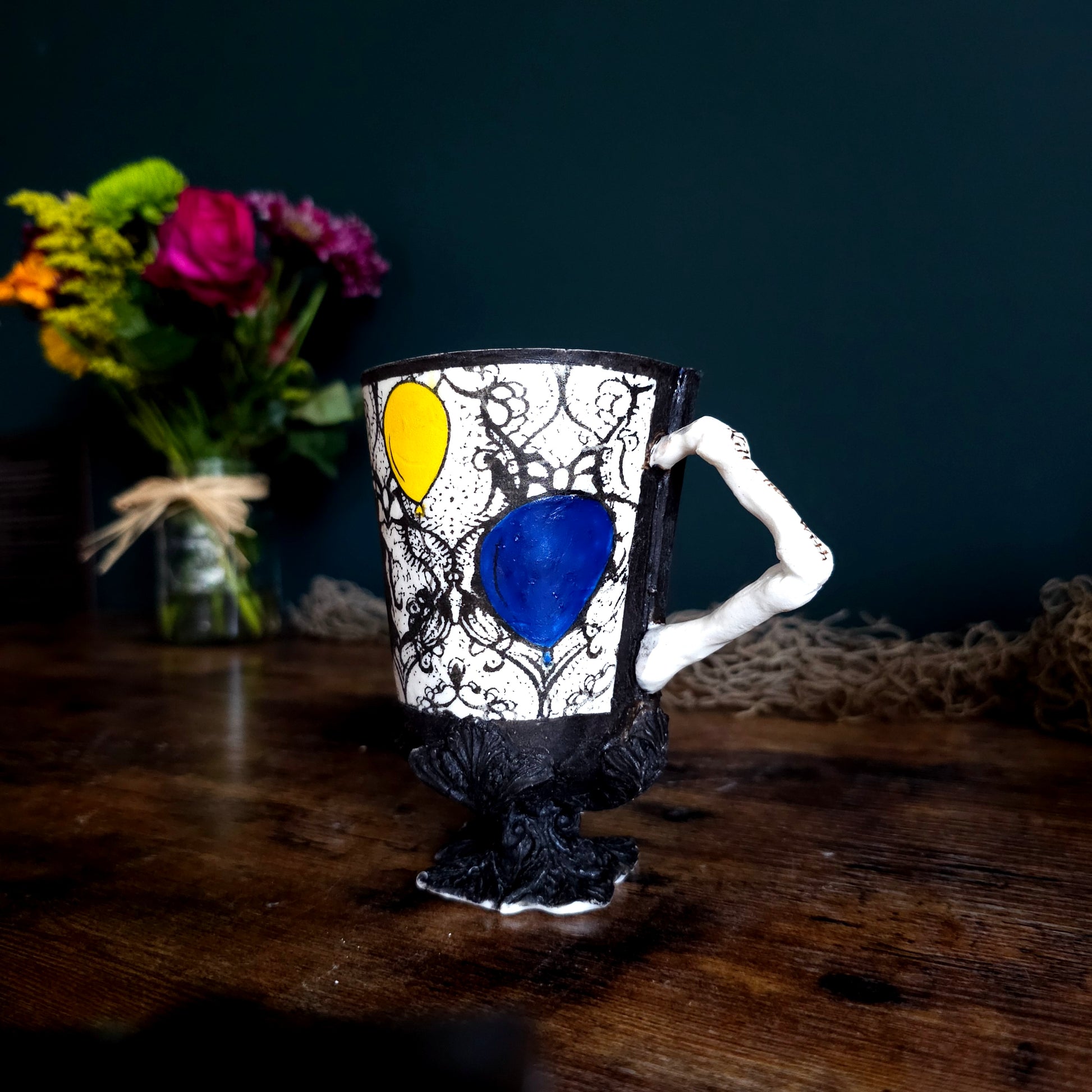 This mug was crafted with translucent porcelain and finished in a glaze that turned out a bit thinner than planned, revealing more of the raw clay texture beneath. The result? A slightly rougher, more natural surface that feels like it came straight from the forest floor—earthy, and full of character. This is also reflected in the price.